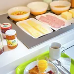 いろいろなビュッフェスタイルの朝食を楽しめます。 宿泊から徒歩で5分のLes ArestochatsレストランではFranse料理を楽しめます。